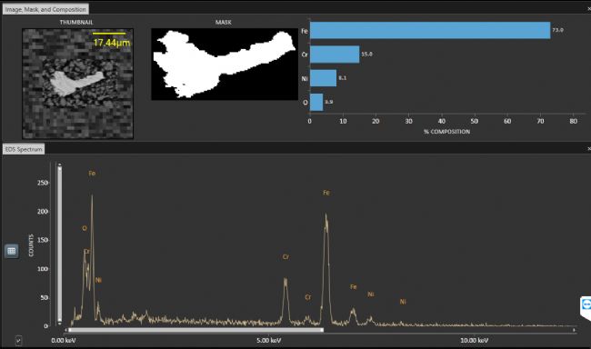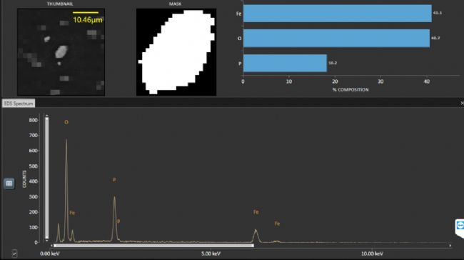 其工作原理為:通過背散射成像的明暗襯度識(shí)別顆粒,進(jìn)而對顆粒進(jìn)行能譜成分分析,并根據(jù)顆粒形貌和成分信息對其進(jìn)行自動(dòng)分類。
