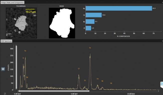 那么,金屬異物到底該如何檢測呢?飛納 Phenom ParticleX 以掃描電鏡和能譜儀為硬件基礎(chǔ),可以全自動(dòng)對金屬雜質(zhì)顆粒進(jìn)行快速識(shí)別、分析和分類統(tǒng)計(jì),為客戶的研發(fā)以及生產(chǎn)提供快速、準(zhǔn)確和可靠的定量數(shù)據(jù)支持。