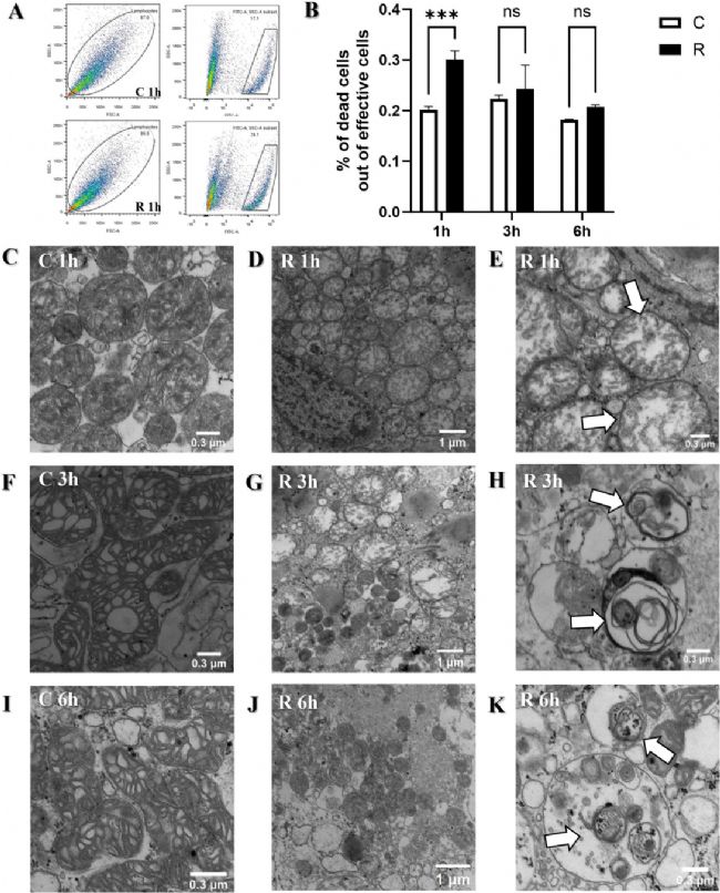 本研究發(fā)現(xiàn),在正常培養(yǎng)條件下心肌細(xì)胞的狀態(tài)是穩(wěn)定的。微波照射后,細(xì)胞活力呈現(xiàn)出動態(tài)變化。1小時細(xì)胞活力顯著下降(p < 0.001),大量線粒體受損,線粒體腫脹,出現(xiàn)空泡狀結(jié)構(gòu),嵴結(jié)構(gòu)消失,表明此時細(xì)胞受到輻射的影響很大。3小時和6小時后,大量線粒體自噬現(xiàn)象出現(xiàn)并持續(xù)擴大,破壞了線粒體融合,并通過自噬體進一步清除,而正常的線粒體則繼續(xù)正常運轉(zhuǎn),這表明細(xì)胞在受到微波輻射后具有一定的自我修復(fù)能力。