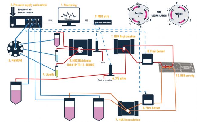 - 模擬生理流動(dòng)條件:MUX 再循環(huán)裝置允許對(duì)流體進(jìn)行精確、可編程的再循環(huán),這對(duì)于復(fù)制血腦屏障中內(nèi)皮細(xì)胞所經(jīng)歷的剪切應(yīng)力和流體動(dòng)力學(xué)至關(guān)重要。