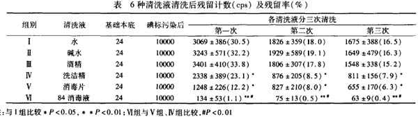 六種清洗液對γ計數(shù)器試管架的清洗效果對比