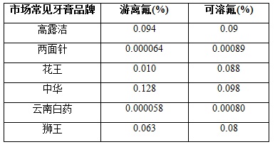 市面上含氟牙膏中的氟主要以氟化亞錫、單氟磷酸鈉或氟化鈉形式存在。我國牙膏執(zhí)行標準GB 8372-2008中標出:成人牙膏氟含量在0.05%—0.15%之間,兒童牙膏氟含量在0.05%—0.11%之間。目前牙膏生產(chǎn)廠家常用的測定方法有氣相色譜法、離子色譜法、分光光度法,滴定法和氟離子選擇性電極法等。