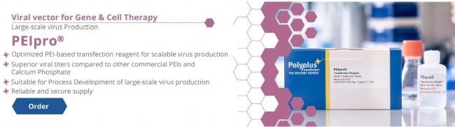 首選轉(zhuǎn)染方法,且從工藝開發(fā)到大規(guī)模臨床級的病毒生產(chǎn)可直接放大和無縫過渡,在各種生產(chǎn)細胞中病毒產(chǎn)量最高。PEIpro® 完全克服了未經(jīng)提純和優(yōu)化的原始PEI的缺點,遵循非常嚴(yán)格的質(zhì)量控制和法律法規(guī)。