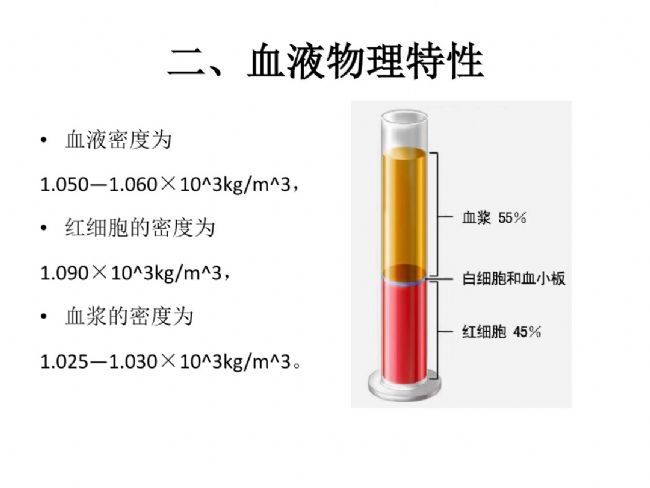 血液中除有形成分外,其他部分即為血漿。血漿是血液中的液體成分。血漿中含許多重要物質(zhì),有蛋白質(zhì)、無(wú)機(jī)鹽(鉀、鈉、鈣等)、抗體、激素等。其中水分占91%---92%。