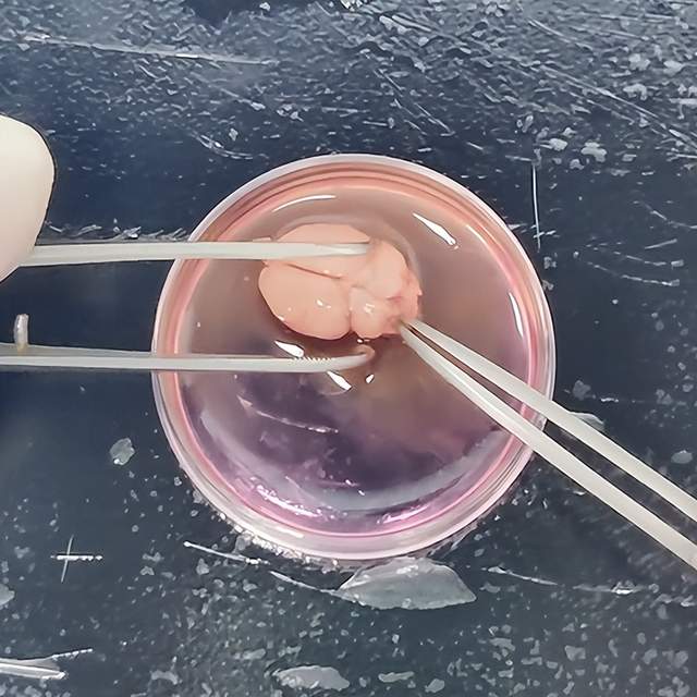 2、剝離成年鼠(P>7)腦組織,暫存至盛有HBSS(含Ca2+和Mg2+)的培養(yǎng)皿中,用眼科鑷輕輕地將腦組織的血管盡可能去除。