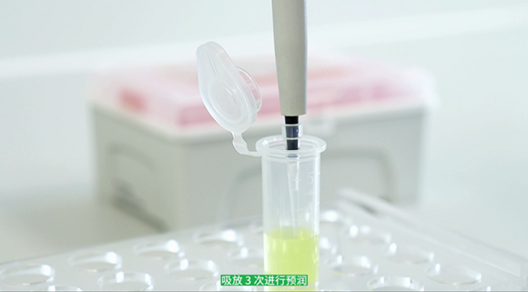 吸液前,先將新的吸頭放進待吸樣本中吸放3次液體進行預(yù)潤,在吸頭內(nèi)部形成同質(zhì)膜,提高移液準確度,保持一致的重復(fù)性。