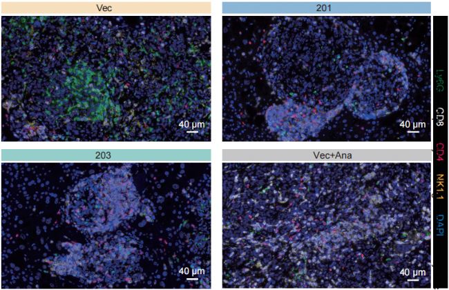 圖:IL1RN-201/203或Anakinra治療組在Yak和KP小鼠中CD8+T細(xì)胞的滲透顯著增加