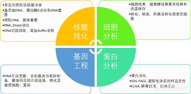 細(xì)胞、克隆、組織樣本的DNA/RNA/蛋白提取實驗等。