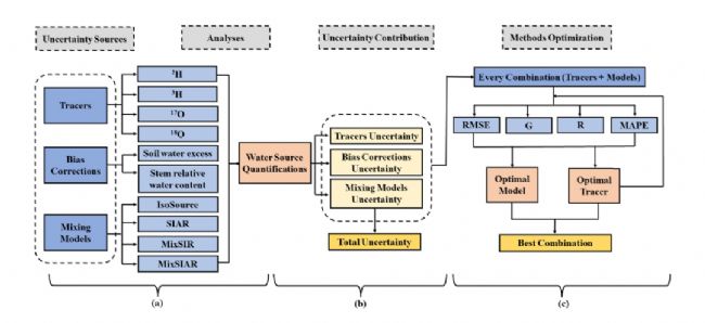 (b)為研究植物水源分配選擇適當(dāng)方法提供了框架。該研究為評估和選擇植物水源分配方法提供了技術(shù)支持,并有助于更好地了解植物水分利用機制。