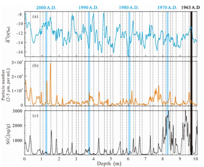 唐古拉冰川10 m冰芯層數(shù)定年結(jié)果