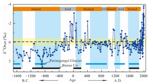 全新世晚期以來唐古拉冰芯δ18Obub的變化結(jié)果