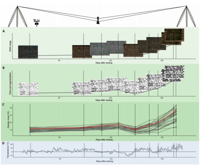 本文的核心內(nèi)容是開發(fā)了一種新的概念,稱為“Frost Damage Index”(FDI),該概念類似于“Growing Degree Days”(GDD),用于累積計算冷凍事件的嚴重性和持續(xù)時間,從而定量評估植物的凍害程度(圖2)。研究采用了高分辨率圖像采集技術(shù),通過監(jiān)測植物冠層的變化來準(zhǔn)確量化冷凍事件引起的葉面積減少。
