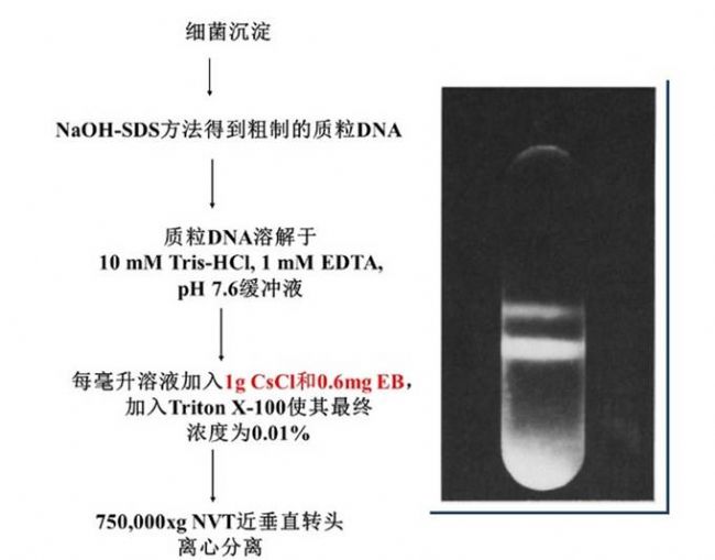 質(zhì)粒DNA的氯化銫等密度梯度離心分離純化流程如下: