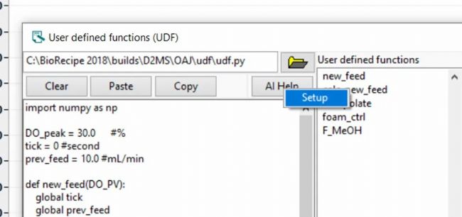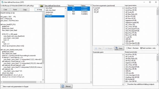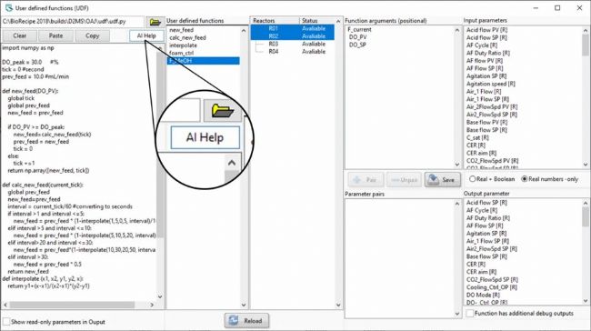 UDF,即用戶自定義函數(shù)(User-defined Function),是生物反應(yīng)器(迪必爾生物)配套軟件D²MS的一個特色功能。通過UDF功能,用戶可以設(shè)置自己的控制邏輯,通過設(shè)定條件與計時器,實現(xiàn)更精細(xì)的生物過程控制。