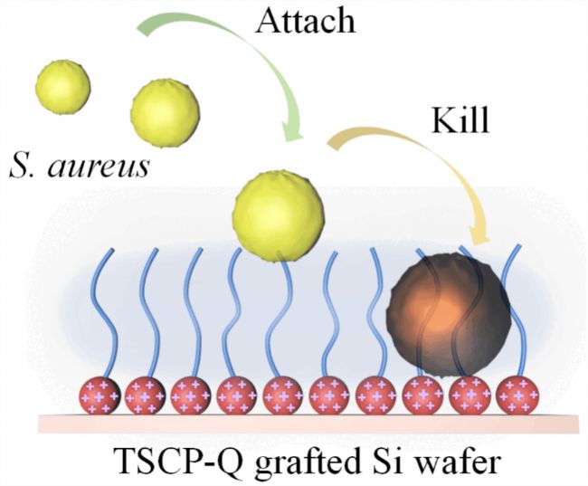 圖4 (A) TSCP-Q的化學(xué)結(jié)構(gòu);(B) TSCP-Q接枝后的硅片表面具有良好的“生物防污”功能。