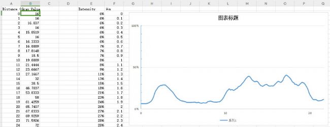 一個小提醒,如果想在Excel里做出像上面論文的圖片,可能還需要經(jīng)過數(shù)據(jù)處理,前列是像素,需要根據(jù)軟件標(biāo)尺換算成尺寸,通常是μm;后列是熒光強(qiáng)度,因為數(shù)據(jù)是8bit的,因此數(shù)值是0-255,按255為100%做個換算來畫Y軸。