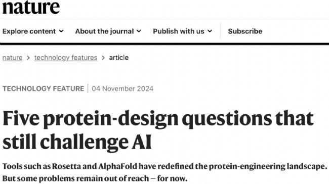 2024年11月4日,Nature發(fā)表文章Five protein-design questions that still challenge AI,討論了蛋白質的AI設計仍然面臨的五個問題。