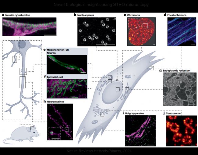 超高分辨顯微鏡可以探索微觀世界的無限可能性,已經徹底改變了科學研究的方式。在細胞生物學領域,它被用于研究亞細胞結構,如微絲、微管、肌動蛋白等,細胞器如線粒體、溶酶體等,分子分布和細胞膜動態(tài)、觀察蛋白質的相互作用;在神經科學領域,它可用于觀察神經元的亞細胞結構和突觸的細節(jié),有助于解剖和理解神經系統(tǒng)的結構和功能,以及神經系統(tǒng)相關疾病的機制;在癌癥研究領域,被用于研究癌細胞的特征、蛋白質分布以及腫瘤微環(huán)境,這對于癌癥的早期診斷和治療規(guī)劃非常重要;在材料科學領域,它被用于研究納米材料的結構和性質、幫助科學家精確控制和制備納米結構;在藥物研發(fā)領域,它可用于研究藥物靶標蛋白的定位和與其他分子的相互作用,助力藥物設計和篩選;在微生物領域,規(guī)避了電子顯微鏡無法進行活體成像等弊端,可以更加推進微生物學發(fā)展。隨著未來技術的進一步發(fā)展和完善,STED將在揭示生命現(xiàn)象的微觀機制方面展現(xiàn)出更大的潛力,STED技術將朝向更高的成像速度、更深的成像深度以及更廣的應用范圍發(fā)展。