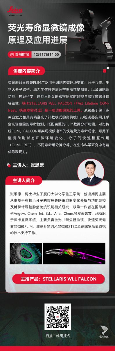 近年來,得益于新的硬件革新及技術手段的引入、熒光染料和探針的改進、光學系統(tǒng)的優(yōu)化和更精確的成像算法等,STED技術在分辨率和應用方面都有了顯著提升,發(fā)展為易用、穩(wěn)定的成熟商業(yè)產品,逐步成為生物醫(yī)學領域中重要的研究工具。STED技術結合熒光壽命成像更是發(fā)揮了降低損耗光強度優(yōu)勢、打破相近波長染料不可共染的限制,進一步降低了光漂白、提高了分辨率。