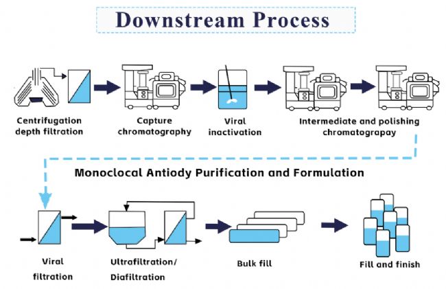 下游工藝(Downstream Process, DSP)是生物制藥生產(chǎn)的關(guān)鍵環(huán)節(jié),主要目標(biāo)是將上游培養(yǎng)獲得的生物分子(如單克隆抗體、重組蛋白)進(jìn)行純化、純化和制備符合臨床要求的藥品。