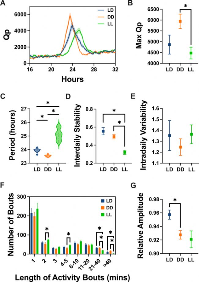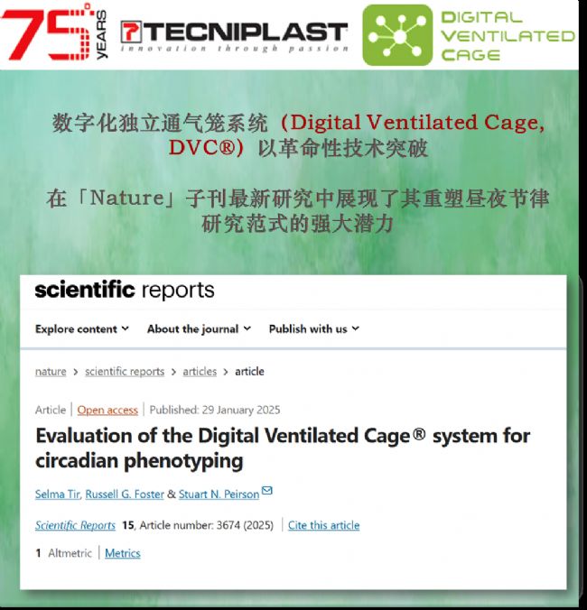 牛津大學研究團隊于2025年1月底在Scientific Reports上發(fā)表的題為“Evaluation of the Digital Ventilated Cage® system for circadian phenotyping”的研究表明,泰尼百斯集團的DVC系統(tǒng)能夠精確捕捉生物鐘的細微變化。例如,在持續(xù)黑暗(DD)環(huán)境下,小鼠展現(xiàn)出23.5小時的內(nèi)源性周期,且在持續(xù)光照(LL)下,周期延長至25.1小時,這一結果與經(jīng)典理論高度一致,驗證了光照對生物節(jié)律的調(diào)控機制。此外,DVC系統(tǒng)還能夠復現(xiàn)微弱的節(jié)律擾動,比如在夜間光脈沖的作用下,活動起始點延遲了1.3小時,精準復現(xiàn)了Aschoff II型相位響應曲線,證明其對微小節(jié)律變化的高度敏感性。而在基因缺陷模型中,Cry1/2雙敲除小鼠在黑暗環(huán)境下完全失去了節(jié)律,但在正常光照周期中,依然保持了表觀節(jié)律,揭示了傳統(tǒng)方法可能忽略的“假性節(jié)律”現(xiàn)象。