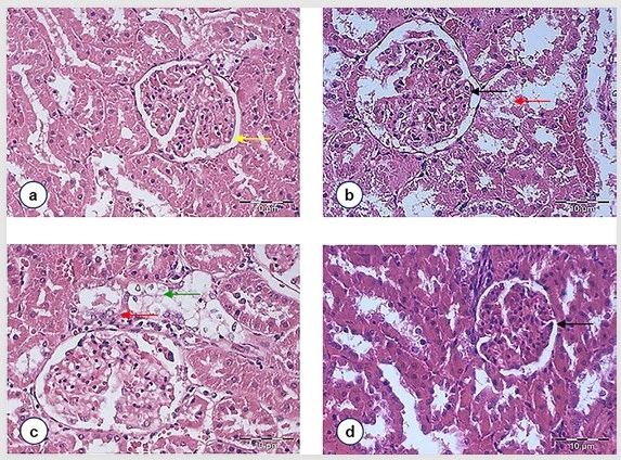 圖 2 HE染色后的腎臟組織(腎臟腎小球和腎小管)病理學(xué)觀察 [2]