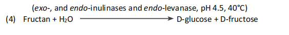 蔗糖被一種特定的蔗糖酶水解,這種酶對(duì)低聚合度(DP)的FOS(如1-果糖和1,1-酮四糖)沒(méi)有作用3。淀粉和麥芽糊精被普魯蘭酶和β-淀粉酶水解為麥芽糖和麥芽三糖,然后這些低聚糖被麥芽糖酶水解為D-葡萄糖(1&2)。由于蔗糖酶在30°C下更穩(wěn)定,因此現(xiàn)在這是該培養(yǎng)步驟的推薦溫度。