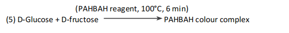 使用PAHBAH還原糖法測(cè)量來(lái)自果聚糖的D-果糖和D-葡萄糖。6這種方法使用簡(jiǎn)單,D-果糖和D-葡萄糖的顏色響應(yīng)相同(5)。