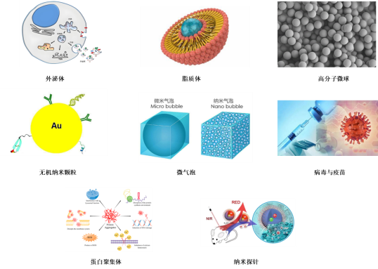 納米顆粒跟蹤分析儀的用途非常廣泛,在科研系統(tǒng)的研究領(lǐng)域里,可以在脂質(zhì)體和藥物傳遞納米顆粒、蛋白質(zhì)聚集物、10-1000nm金屬和無機納米顆粒、高分子納米懸浮液、稀土納米顆粒及量子點/多層碳納米管、疫苗研發(fā)、納米氣泡、納米毒理學和生物標記物、細胞外泡(外泌體和微泡)等領(lǐng)域進行粒徑大小測量、濃度測量、熒光純度檢測及Zeta電位測量。因此其在生物醫(yī)學、藥物開發(fā)、納米材料科學、環(huán)境科學、化學工程等領(lǐng)域廣泛使用。