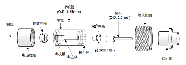 2、在擰緊電極螺帽時(shí),盡可能不要以吸吮管為著力點(diǎn),以防止夾持器從該處開裂。