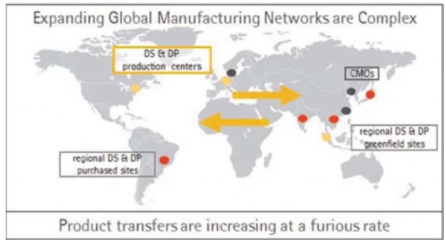 隨著生物制藥公司繼續(xù)擴(kuò)大其原料藥的全球分銷,網(wǎng)絡(luò)變得越來越復(fù)雜,不僅包括傳統(tǒng)的生產(chǎn)中心,還包括合同制造組織的生產(chǎn)基地、離岸設(shè)施和綠地設(shè)施。