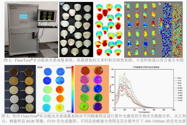 FluorTron®多功能高光譜成像系統(tǒng),該系統(tǒng)集反射高光譜和UV-MCF紫外光激發(fā)生物熒光高光譜功能于一體,為玉米、小麥等多種生物樣品的高光譜成像分析、熒光成像分析及光譜分析提供了非接觸、非損傷、高通量、數(shù)字化、可視化的研究檢測解決方案。