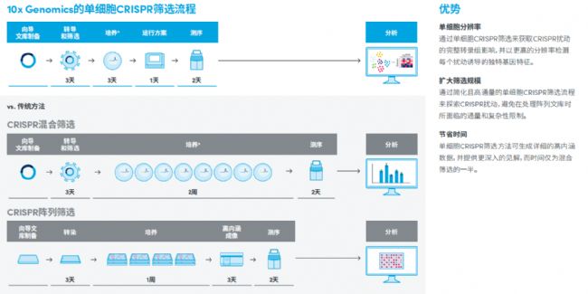 來自單細(xì)胞分析引領(lǐng)品牌10x Genomics的Chromium單細(xì)胞CRISPR篩選技術(shù)帶來了一個(gè)更簡(jiǎn)單、更快速的工作流程,采用Feature Barcode技術(shù)和新一代測(cè)序技術(shù)來檢測(cè)單鏈向?qū)NA(sgRNA),該技術(shù)可評(píng)估慢病毒向?qū)?RNA(sgRNA)轉(zhuǎn)導(dǎo)的單細(xì)胞輸入,提供了一種高通量、可擴(kuò)展的方法,能在同一個(gè)單細(xì)胞中同時(shí)獲取基因表達(dá)譜和 CRISPR 介導(dǎo)的擾動(dòng)表型。(圖2)