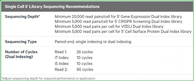 在確定特定擾動(dòng)的效應(yīng)時(shí),目標(biāo)基因表達(dá)的動(dòng)態(tài)測(cè)序深度范圍是關(guān)鍵因素。由于特定基因的 UM數(shù)量取決于基因表達(dá)文庫的整體測(cè)序深度,文庫的測(cè)序深度越深,可檢測(cè)到的 UMI 就越多(直至基因表達(dá)文庫達(dá)到飽和狀態(tài),此時(shí)每增加一次新的測(cè)序讀數(shù),檢測(cè)到新 UMI 的可能性極低)。特定基因檢測(cè)到的 UMI 數(shù)量越多,其表達(dá)變化被檢測(cè)到且具有顯著性的可能性就越大。下圖(圖5)建議了5’表達(dá)譜、5’ CRISPR等文庫的最低測(cè)序量。