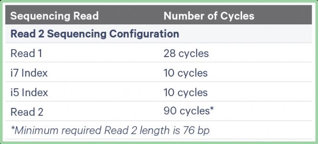 建議將GEM-X Flex CRISPR 篩選文庫與基因表達(dá)文庫混合二者混合,以在測(cè)序過程中維持核苷酸多樣性。GEM-X Flex 基因表達(dá)文庫的建議最低測(cè)序深度為 10,000 read Pairs / 細(xì)胞,GEM-X Flex CRISPR 篩選文庫的建議最低測(cè)序深度為 5,000 read pairs / 細(xì)胞。圖8和圖9 分別展示了兩文庫結(jié)構(gòu)及測(cè)序讀長(zhǎng)建議。