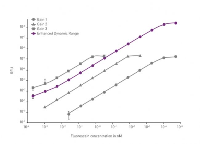 圖1: EDR技術,顯示一鍵啟動后自動處理不同濃度樣品,信號均完美檢測
