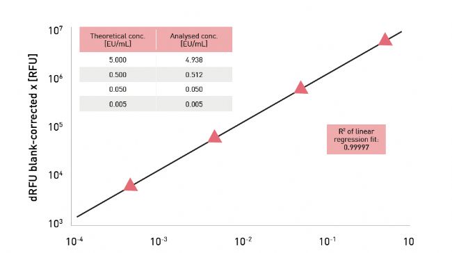圖3: 由預載在ENDOZYME II板上的標準品所生成的標準曲線,在VANTAstar中展現(xiàn)出極高的線性相關性(R² > 0.999)