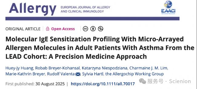 這篇文章探討了利用微陣列技術(shù)(Scienion儀器)對成人哮喘患者的IgE敏感化譜進行分析,以識別過敏性與非過敏性哮喘之間的差異,并為個性化的免疫治療提供可能的靶點。