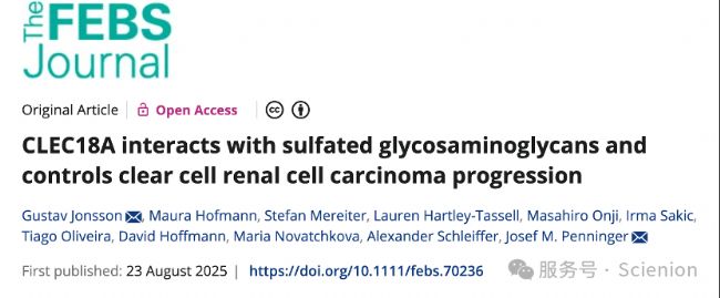 這篇文章探討了C型凝集素(C-type lectins)家族,特別是CLEC18家族在透明細胞腎細胞癌(ccRCC)進展中的關(guān)鍵作用。研究結(jié)果表明CLEC18A是ccRCC腫瘤生長的重要調(diào)節(jié)因子。