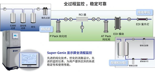 Super-Genie 純水系統(tǒng)純化技術(shù)與流路示意圖