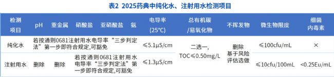 突破一:允許非蒸餾工藝制備注射用水2025版《中國(guó)藥典》最大的變化是,通則0261對(duì)注射用水的定義重新進(jìn)行了修訂,注射用水為純化水經(jīng)蒸餾所得,或?yàn)橥ㄟ^(guò)一個(gè)等同于蒸餾的純化工藝制備所得。