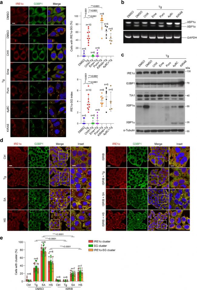 圖 5. Effects of small-molecule protein translation, IRE1α Kinase/RNase or ISR inhibitors upon IRE1α-SG clusters[25]