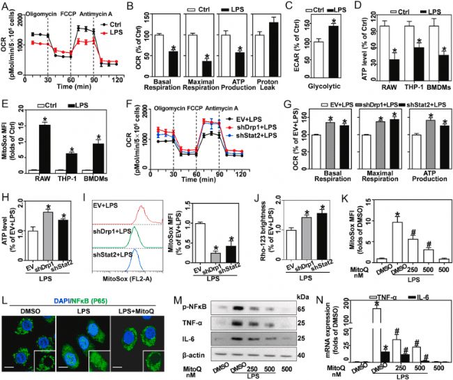 圖 10.Stat2-Drp1 induces mitochondria in LPS-activated macrophages to generate ROS rather than ATP
