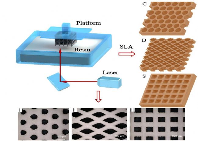 Mei 團(tuán)隊案例:以含Al₂O₃/SiO₂顆粒的光敏樹脂為原料,通過SLA技術(shù)打印方形、圓形、菱形陣列孔結(jié)構(gòu)的碳—陶瓷復(fù)合微反應(yīng)器。