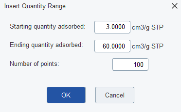 - SiCOPE 40軟件自動判斷上述限值后(圖3),輸入插值點總數(shù),系統(tǒng)自動生成100個線性間隔的吸附體積數(shù)據(jù)點,并繪制等量吸附熱曲線圖。