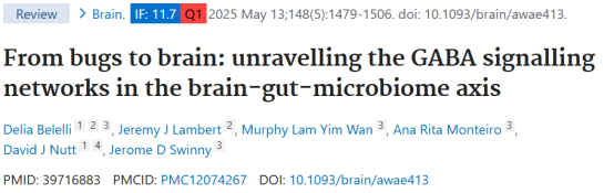 本文基于鄧迪大學delia belelli團隊于BRAIN上發(fā)表的一篇名為“From bugs to brain: unravelling the GABA signalling networks in the brain–gut–microbiome axis”的文章進行解讀,其核心目的是系統(tǒng)梳理 γ- 氨基丁酸(GABA)在腦 - 腸 - 微生物組(BGM)軸中的信號傳導網(wǎng)絡,明確其在多系統(tǒng)穩(wěn)態(tài)調(diào)節(jié)中的作用機制,并為相關疾病的治療提供理論依據(jù)與研究方向,具體可拆解為以下 3 點: