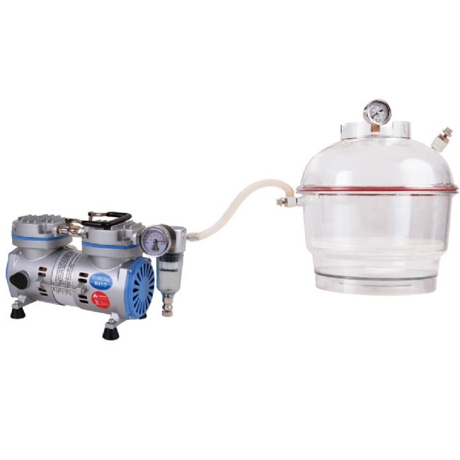 ● 真空干燥——真空環(huán)境下的干燥可以防止熱敏性物質(zhì)分解,并加速揮發(fā)性溶劑的去除。真空泵通過持續(xù)移除干燥過程中產(chǎn)生的溶劑蒸氣,維持箱內(nèi)低壓狀態(tài)。真空干燥過程中,材料內(nèi)部的溶劑或水分會緩慢釋放,要求真空泵具有連續(xù)工作能力和穩(wěn)定的極限真空度。這類應(yīng)用通常周期較長,可能需要數(shù)小時甚至數(shù)天,因此對真空泵的可靠性和耐久性有較高要求。此外,一般需要使用抽速快、真空度高的產(chǎn)品,如R610二級無油真空泵,能在較短時間內(nèi)將干燥箱或干燥器抽到所需真空度。