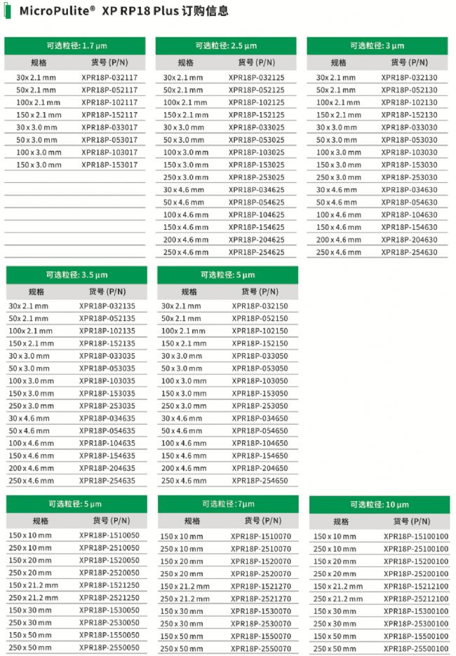 色譜柱:MicroPulite® XP RP18 Plus 4.6*150mm 5.0μm(貨號:XPR18P-154650)