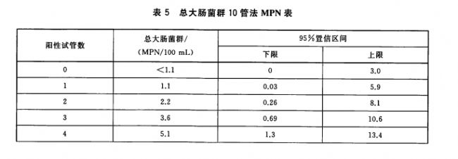 2、統(tǒng)計所有檢測樣本中EC-MUG陽性的試管數(shù)量,根據(jù)多管發(fā)酵法對應(yīng)的樣本接種量及稀釋梯度,查閱大腸埃希氏菌MPN表,計算得出水樣中大腸埃希氏菌的MPN值,檢測結(jié)果以“MPN/100mL”為單位進行報告。