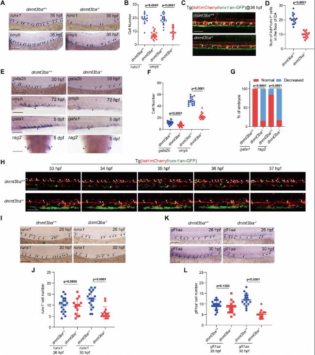 圖1:Dnmt3ba對(duì)EHT和HSPC發(fā)育至關(guān)重要